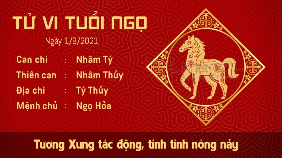 Dưới tác động của cục diện Tý Ngọ tương xung, người tuổi Ngọ trở nên nóng nảy và bốc đồng. Đặc biệt, bạn thường có những hành động bột phát mỗi khi ý kiến, quan điểm của mình không được đồng tình ủng hộ. Nếu đứng ở vị thế lãnh đạo, bản mệnh cần để ý đến những đối tượng vây quanh nịnh nọt mình. Đừng để những lời nịnh nọt khiến mình có quan điểm sai lệch về vấn đề. Hãy tìm hiểu mọi chuyện thật kĩ trước khi quyết định tin theo hay trách phạt người này, người khác. Hôm nay trực Định là ngày tốt về cầu tài, ký hợp đồng, yến tiệc nhưng tránh kiện tụng, tranh chấp, chữa bệnh. Vì vậy, bản mệnh nên sắp xếp công việc để thực hiện cho đúng, như vậy mới gặp nhiều may mắn.