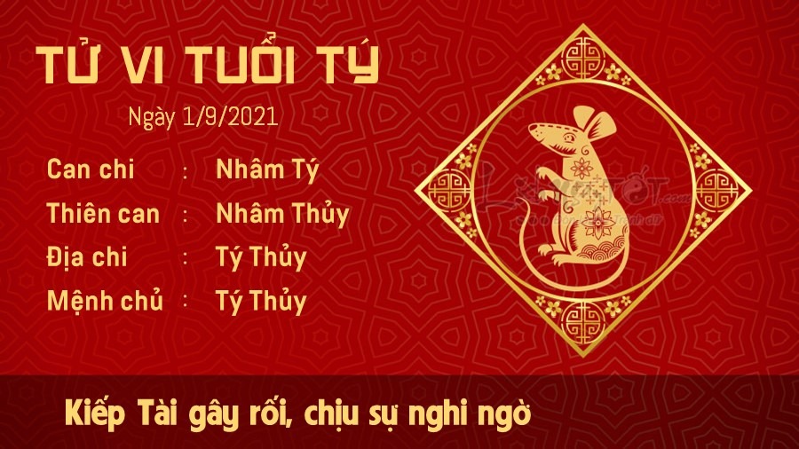 Kiếp Tài gây rối, người tuổi Tý dễ gặp phải rắc rối trong công việc vào ngay ngày đầu tháng. Bản mệnh có thể sẽ phải chịu sự ganh ghét hoặc nghi ngờ của những người đồng nghiệp. Tuy nhiên, bạn không nên quá nóng giận và cư xử mất bình tĩnh. Hãy chứng minh cho mọi người thấy sự trong sạch của mình bằng thái độ thẳng thắn và sự chăm chỉ trong công việc. Những điều bạn đã, đang và sẽ làm sẽ được thực tế chứng minh, và ai đã nghi ngờ bạn sẽ cảm thấy có lỗi. Trong ngày Thủy vượng như hôm nay, bản mệnh cần chú ý giữ gìn sức khỏe, đặc biệt là các bệnh về xương khớp ở người già và người làm văn phòng.