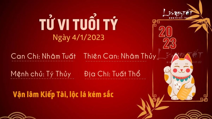 04/01/2023 13:00Tử vi thứ 4 ngày 04/01/2023 của 12 con giáp: Tý lộc lá kém sắc, Dần làm ăn thuận lợi