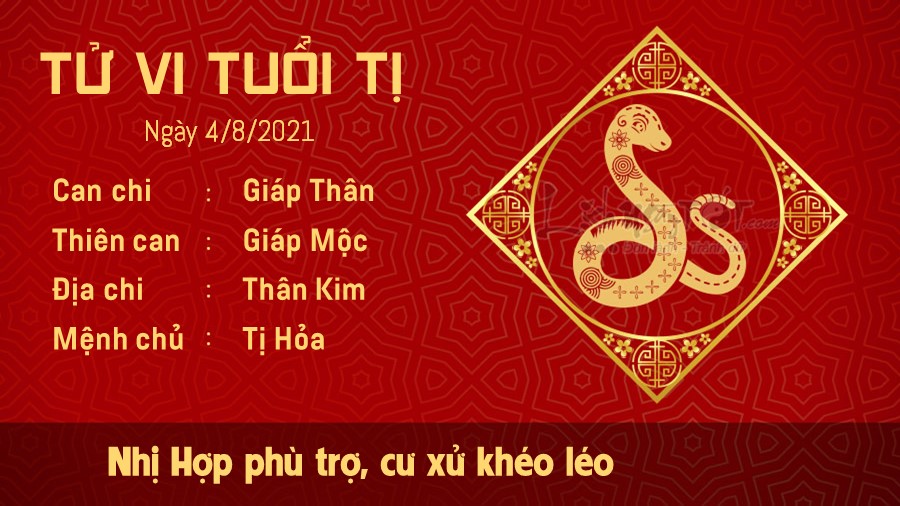 Nhị Hợp phù trợ, tuổi Tị nhanh chóng nắm bắt được mong muốn của người khác nên luôn có cách cư xử khéo léo, chẳng mất lòng ai. Bạn nhanh chóng chinh phục được mọi người xung quanh, trở thành một người nổi bật. Trong cuộc sống, bạn là người rất hăng hái giúp đỡ bạn bè, đồng nghiệp, thậm chí là cả người xa lạ, cho dù đối phương có bày tỏ mong muốn của mình hay không. Đây chính là nguyên nhân khiến bạn xây dựng được những quan hệ xã giao tốt đẹp. Người được bạn giúp đỡ bây giờ có thể trở thành quý nhân của bạn trong tương lai. Hỏa khắc Kim cho thấy có vấn đề xảy ra trong mối quan hệ gia đình của bản mệnh. Vợ chồng bạn liên tiếp chiến tranh lạnh vì những quan điểm bất đồng.
