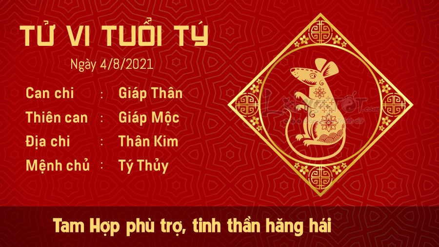 Tam Hợp giúp người tuổi Tý luôn có tâm trạng vui tươi, tích cực. Trong ngày hôm nay, những khó khăn, rắc rối không hề làm bạn chùn bước hay chán nản mà ngược lại, càng khiến bạn cảm thấy quyết tâm và hăng hái hơn bao giờ hết. Bạn tin rằng thử thách chính là yếu tố giúp mình tiến bộ mỗi ngày. Bạn hoàn toàn có thể đặt nhiều hi vọng hơn vào những kế hoạch tương lai của mình, bởi bạn đang nhận được sự đánh giá tích cực đến từ rất nhiều người, đặc biệt là cấp trên của bạn. Kim sinh Thủy cho thấy bản mệnh có một gia đình rất hòa thuận. Dù công việc có vất vả bao nhiêu thì khi ở nhà, bạn cũng thấy hoàn toàn thư giãn, quên đi hết mọi mỏi mệt.