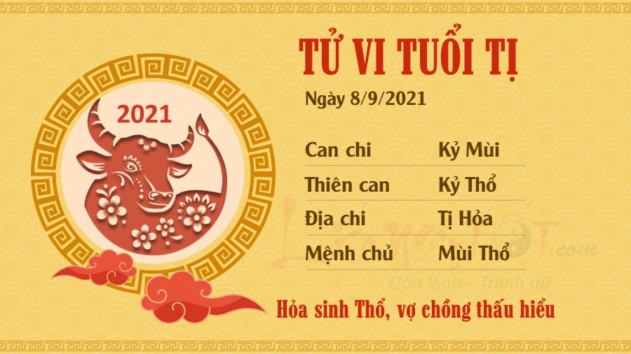 Hỏa sinh Thổ cho thấy mối quan hệ giữa người tuổi Tị và nửa kia đang phát triển rất tốt đẹp. Dù bận rộn đến mấy, hai người luôn cố gắng dành nhiều thời gian để chuyện trò và tâm sự với nửa kia, chẳng bao giờ thờ ơ với cảm xúc của đối phương. Những người còn độc thân cũng có thể nhận được nhiều sự quan tâm, để ý của người khác phái. Đừng tiếp tục sống mãi trong thế giới của riêng mình, hãy cho mình cơ hội được tận hưởng niềm hạnh phúc. Chính Ấn nâng đỡ, bản mệnh có cơ hội khẳng định vị thế của mình. Bạn hoàn thành xuất sắc những nhiệm vụ được giao, dù công việc ấy có khiến người ngoài cảm thấy hóc búa, thậm chí thoái thác không muốn nhận trách nhiệm đi chăng nữa.