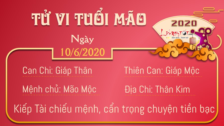Kiếp Tài chiếu mệnh, người tuổi Mão sẽ gặp không ít rắc rối liên quan đến tiền bạc trong ngày thứ 4 này. Bản mệnh dễ bị choáng ngợp trước những lời mời gọi hấp dẫn để rồi vội vàng đầu tư mà không tìm hiểu những rủi ro ẩn sau đó. Hãy tỉnh táo và sáng suốt trước khi quyết định những chuyện hệ trọng như thế này. Số tiền đầu tư dù lớn hay nhỏ cũng là công sức mà bạn đã bỏ ra bấy lâu nay. Đừng để chúng một đi không trở lại. Ngũ hành Kim – Mộc xung khắc cảnh báo con giáp này nên cẩn thận với những mối quan hệ khác giới. Sự tin tưởng đặt nhầm chỗ sẽ khiến bạn chịu những tổn thương khó có thể lành được.