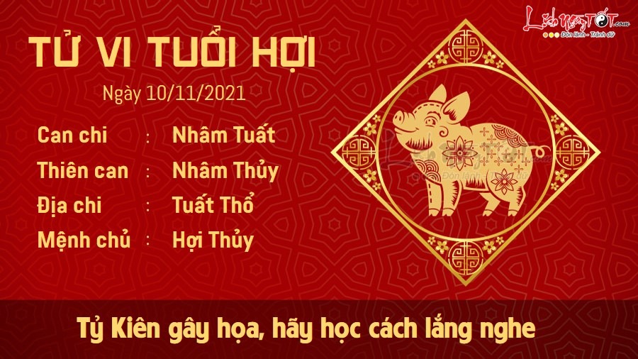 Tỷ Kiên gây họa, người tuổi Hợi khó giữ được quan hệ tốt đẹp với bạn bè, đồng nghiệp của mình. Khi đôi bên mâu thuẫn với nhau, đừng nên khăng khăng giữ lấy ý kiến của riêng mình. Hãy thử lắng nghe đối phương xem sao. Bạn vốn là một người mạnh mẽ và có chí tiến thủ, song đừng vì thế mà gạt bỏ lời của người khác, tự cô lập bản thân để sống trong thế giới của riêng mình. Bạn cần quan sát xung quanh nhiều hơn thì mới có thể đưa ra những kế hoạch phát triển phù hợp, không mù quáng. Thai thần ở hướng Đông Nam phía ngoài phòng và giường ngủ của thai phụ, không nên dịch chuyển ở nơi này tránh làm động Thai thần, ảnh hưởng đến cả người mẹ và thai nhi.