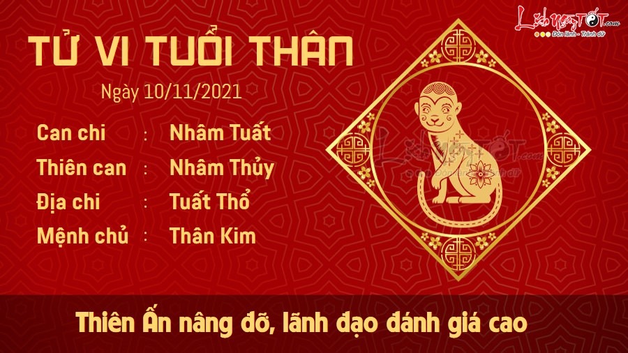Thiên Ấn nâng đỡ, người tuổi Thân có thể hoàn thành xuất sắc công việc được phân công, khiến lãnh đạo hài lòng và đánh giá cao. Thông qua quá trình làm việc, bạn còn phát hiện ra tiềm năng mới của mình. Hãy có cách hợp lý để phát huy thế mạnh, bạn sẽ còn phát triển nhanh chóng và mạnh mẽ hơn cả bây giờ. Nếu còn băn khoăn trước các sự lựa chọn, bạn cũng có thể hỏi ý kiến của người thân quen, ai cũng sẵn sàng đưa ra giúp bạn những gợi ý thôi. Thổ sinh Kim, mối quan hệ giữa bản mệnh và nửa kia rất hài hòa. Trải qua những mâu thuẫn, hai người lại càng thêm thấu hiểu và quý trọng nhau hơn. Cả hai đều nhất trí sẽ cùng chung tay xây dựng một gia đình hạnh phúc đáng ngưỡng mộ.