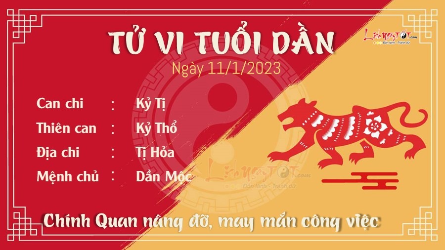 Tuổi Dần may mắn có Chính Quan nâng đỡ nên vô cùng may mắn trong công việc. Những mối quan hệ xã hội xung quanh sẽ giúp ích cho bạn rất nhiều, hãy biết trân trọng điều đó. Ai chuẩn bị thi bằng lái xe, thi công chức hoặc xin việc sẽ được ơn trên nâng đỡ, hãy yên tâm. Vận tài lộc không tốt, cuối năm đang cận kề lại vướng thêm Tương Hình nên Dần phải hết sức lưu ý. Nhiều lúc đầu óc bạn không được tỉnh táo cho lắm, hơi mệt mỏi nên dễ tính sai tiền, để quên đồ. Bạn nên dành thời gian nghỉ ngơi nhiều hơn kẻo lại mất tiền. Cục diện ngũ hành Hỏa sinh Mộc cho biết tuổi này sẽ gặp may mắn trong chuyện tình cảm. Nhiều bạn trẻ được người khác để ý nhờ sự duyên dáng và tài ăn nói của mình. Bạn sống khá thẳng thắn, vô tư nên hiếm khi để ý đến sự sân si của người khác đối với mình.