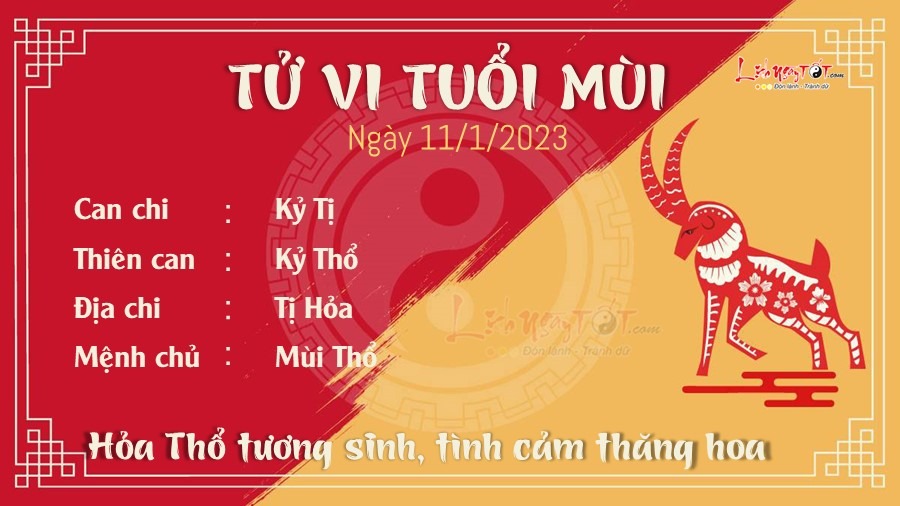 Công việc lâm Tỷ Kiên khiến tuổi Mùi khá lao đao và mệt mỏi. Người khác thì háo hức Tết, còn bạn thì ngao ngán vô cùng, buôn bán gần Tết kém hơn năm trước. Người làm công sở sẽ gặp khó khăn trong công việc vì bị đồng nghiệp nghi ngờ, tìm cách cản trở. Con đường tiền bạc thì ngược lại, nhờ Tam Hội nâng đỡ nên Mùi cũng đỡ vất vả hơn vì tiền. Nhiều bạn khó khăn thật sự nhưng may mắn được gia đình hỗ trợ. Tài lộc dồi dào nhờ nguồn thu từ công việc tay trái và giỏi tiết kiệm, không tiêu hoang, quả đúng là con giáp chăm chỉ, khiêm tốn. Hỏa Thổ tương sinh giúp tuổi này thăng hoa trong chuyện tình cảm. Tình cảm vợ chồng không có sự thay đổi, tuy nhiên cũng đừng vì bận rộn công việc mà quên vun đắp tình cảm đó nhé. Người độc thân được nhiều người theo đuổi và ngỏ lời yêu thương.