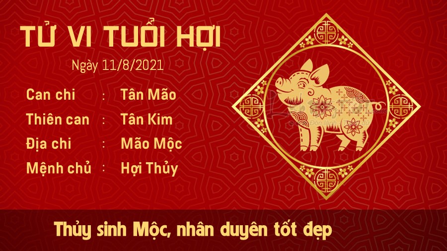 Thủy sinh Mộc, người tuổi Hợi đã lập gia đình sẽ có một ngày khá yên bình. Sau một ngày đi làm vất vả thì gia đình chính là nơi chốn giúp bạn hoàn toàn thả lỏng, quên đi những chuyện không vui ngoài xã hội. Những người còn độc thân có thể nhận được tín hiệu đáng mừng từ những người khác giới. Con người không có ai hoàn hảo, bạn nên có cái nhìn tích cực hơn để nhận ra được những ưu điểm của mọi người và cho đối phương cơ hội. Thương Quan báo hiệu nhiều rắc rối sẽ xảy ra với người tuổi Hợi trong ngày hôm nay. Bản mệnh có thể vướng phải mâu thuẫn, bất đồng ý kiến với lãnh đạo, khiến công việc gặp khó khăn. Tuy nhiên, bạn không nên suy nghĩ quá bi quan.