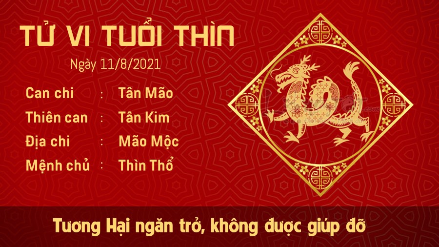 Tương Hại đẩy người tuổi Thìn vào tình huống phải đối diện với nhiều khó khăn. Trong ngày hôm nay, bạn thường không nhận được sự giúp đỡ và ủng hộ của mọi người, thậm chí rơi vào cảnh bị cô lập. Khi đối diện với hoàn cảnh trên, bạn không nên cảm thấy bất mãn và oán trách người khác. Bạn nên xem lại bản thân và kế hoạch của mình, xem mọi việc liệu đã hợp lý hay chưa, vì sao mà mình lại bị phản đối nhiều đến thế. Mộc khắc Thổ còn nhận thấy bạn và nửa kia dù là vợ chồng nhưng vẫn có những chuyện cần phải thấu hiểu, bao dung hơn cho nhau. Đừng để tình trạng bất đồng ý kiến xảy ra quá thường xuyên, khiến tình cảm giữa đôi bên ngày càng nguội lạnh.