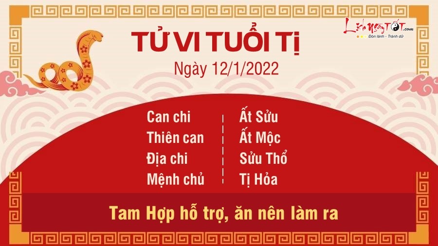 Mệnh được Tam Hợp hỗ trợ, Tị ăn nên làm ra. Công việc phát triển đều đều, học hành thi cử điểm số tốt hơn mọi ngày nhờ vào may mắn và phước phần của bạn. Hôm nay bạn nào đi ký kết hợp đồng sẽ thuận lợi, có tiền thưởng hoa hồng nhờ vào tài ăn nói khéo léo của mình. Tuy nhiên Thương Quan chiếu mệnh nên tình cảm không như ý. Nữ tuổi Tị hay gặp xích mích nhỏ với gia đình chồng, đặc biệt là mẹ chồng vì không ưa nhau từ lâu Những cặp đôi đang yêu cũng không tranh khỏi chiến tranh lạnh, không ai chịu xuống nước vì tính cứng đầu của mình. Cục diện Hỏa sinh Thổ kích thích túi tiền của Tị. Mặc dù buồn bã chuyện gia đình nhưng bạn vẫn hăng hái kiếm tiền. Tị quan niệm rằng không có tiền thì đến cả người nhà cũng khinh thường mình nên cứ thấy tiền là kiếm bằng được. Đây cũng là tinh thần tích cực mà mọi người nên học hỏi ở con giáp này.