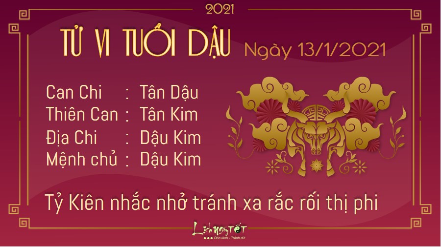 Dậu Dậu Tự Hình ảnh hưởng không nhỏ đến vận trình của người tuổi Dậu. Tâm trạng buồn bực, không biết chia sẻ cùng ai sẽ khiến cho tinh thần bạn ngày một sa sút hơn. Hãy mau chóng trò chuyện với những người bạn tin yêu nhất để vừa có thể được giải tỏa tâm lý, vừa có được lời khuyên quý giá từ đối phương. Tỷ Kiên xuất hiện nhắc nhở bạn cần tránh xa những chuyện thị phi chốn công sở. Chỉ cần một bước đi sai lầm, bạn sẽ có thể phải gánh chịu những hậu quả chẳng thể lường trước được. Kim khí vượng, sức khỏe của bản mệnh có thể bị ảnh hưởng ít nhiều.
