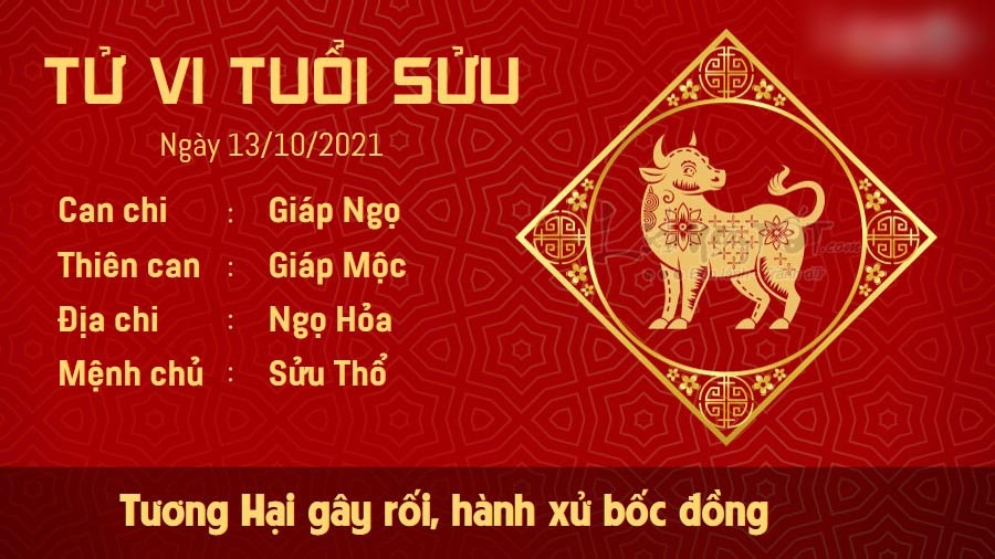 Do ảnh hưởng của cục diện Tương Hại, người tuổi Sửu trở nên bối rối khi phải giải quyết những sự cố bất ngờ. Thậm chí, bạn thường xuyên thay đổi quan điểm của mình, chẳng thể chắc chắn khi làm bất cứ việc gì. Nếu cảm thấy mệt mỏi, bạn không nên tiếp tục quá sức bởi như vậy chỉ càng khiến lỗi sai dễ xảy ra hơn mà thôi. Tốt nhất, hãy để cho bản thân mình nghỉ ngơi, đừng nên truyền những năng lượng tiêu cực cho mọi người xung quanh. Hỏa sinh Thổ cho thấy nửa kia của bạn rất thông minh và luôn sẵn sàng ở bên bạn dù có bất cứ chuyện gì. Vì vậy, bản mệnh nên tâm sự với người ấy nhiều hơn chứ đừng giấu mọi chuyện trong lòng.