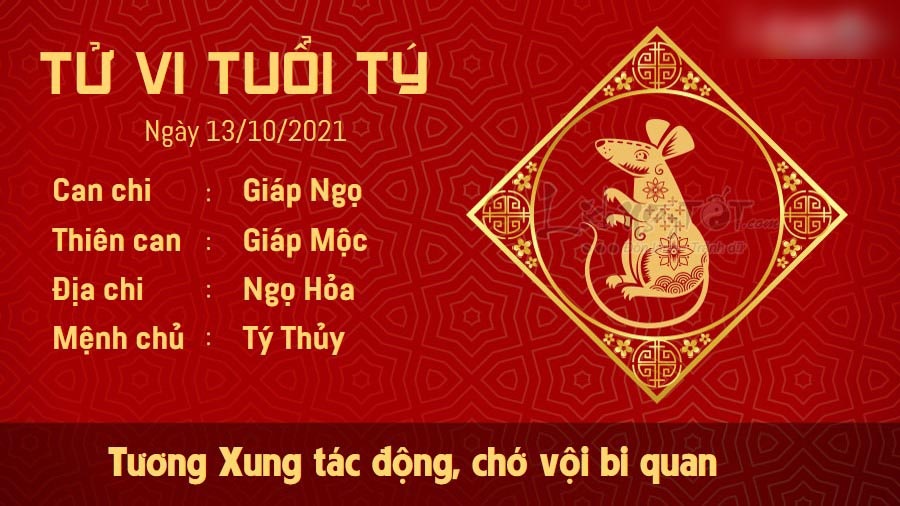 Tương Xung tác động khiến người tuổi Tý làm gì cũng cảm thấy căng thẳng và mệt mỏi. Khi gặp phải chuyện khó khăn, bạn lập tức cảm thấy bi quan, muốn bỏ cuộc và không tiếp tục cố gắng nữa. Trong chuyện tình cảm, người độc thân nên dành thời gian tiếp xúc nhiều hơn với các đối tượng khác giới. Bạn chứ chớ nên vội vàng tin tưởng vào những điều mà đối phương hứa hẹn, nhất là khi đôi bên còn chưa hiểu rõ về nhau. Thai thần ở hướng Bắc phía trong phòng và cửa phòng thai phụ, phòng giã gạo, không nên dịch chuyển vị trí đồ đạc, tiến hành các công việc sửa chữa đục đẽo ở nơi này. Bởi việc làm đó có thể làm động Thai thần, ảnh hưởng đến cả người mẹ và thai nhi.