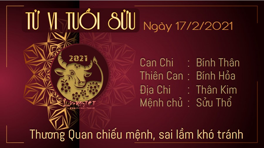 Thương Quan chiếu mệnh ảnh hưởng không nhỏ đến vận trình của người tuổi Sửu trong ngày thứ 4 này. Sự lơ là thiếu tập trung có thể khiến bạn mắc sai lầm trong khi xử lý công việc, hậu quả sẽ vô cùng khó lường. Ngũ hành Thổ sinh Kim, chuyện tình cảm của con giáp này đang tiến triển theo chiều hướng vô cùng thuận lợi. Đôi lứa có thể tính chuyện về chung một nhà sau khoảng thời gian cùng nhau vượt qua bao sóng gió thử thách vừa qua. Nếu phải xuất hành đi xa trong ngày này, bạn nên chọn giờ hoàng đạo cũng như hướng tốt để công việc được thuận lợi hơn. Theo đó, bạn có thể đi về hướng Tây Nam để gặp Hỷ thần hoặc hướng Đông để gặp Tài thần.