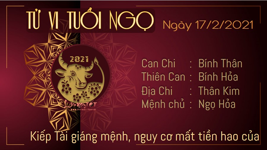 Kiếp Tài giáng mệnh, người tuổi Ngọ cần đề phòng hao hụt tiền bạc. Có tiền trong tay hãy nhớ giữ chặt lấy, đừng để người khác có cơ hội cướp đoạt. Đây là chưa phải là thời điểm thích hợp để con giáp này ra các quyết định đầu tư mạo hiểm đâu, bạn sẽ khó tránh những rủi ro thất thoát đó. Hãy xem xét và cân nhắc mọi việc thật kỹ càng, đừng để lòng tham che mờ. Hôm nay cũng không phải là một ngày may mắn nếu bạn tham gia các trò chơi có thưởng hay trò đỏ đen nữa đó. Người độc thân có thể phải đối diện với không ít chuyện buồn lòng trong ngày Hỏa Kim xung khắc này. Lời tỏ tình không được chấp nhận khiến bạn cứ mãi ôm trái tim đơn phương mà đau khổ.
