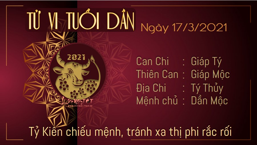 Thiên Tài ghé thăm mang theo tin vui liên quan đến tiền bạc cho người tuổi Tuất. Bạn có được vận may bất ngờ như thế này không phải là điều dễ dàng, vì vậy hãy nhanh chóng nắm bắt và biến chúng thành tiền bạc đổ về túi mình. Sức khỏe của con giáp này có phần giảm sút trong ngày Thổ Thủy xung khắc. Có vẻ như bạn đang quá nuông chiều bản thân rồi, hãy mau chóng điều chỉnh là chế độ sinh hoạt ăn uống nghỉ ngơi và tập luyện một cách điều độ và khoa học hơn, sức khỏe của bạn khi đó mới có thể cải thiện hơn được. Ngày 17/3/2021 dương lịch là ngày Can Giáp, không trị bệnh ở đầu. Bản mệnh nên chú ý chớ tác động vào vị trí này trong ngày hôm nay.