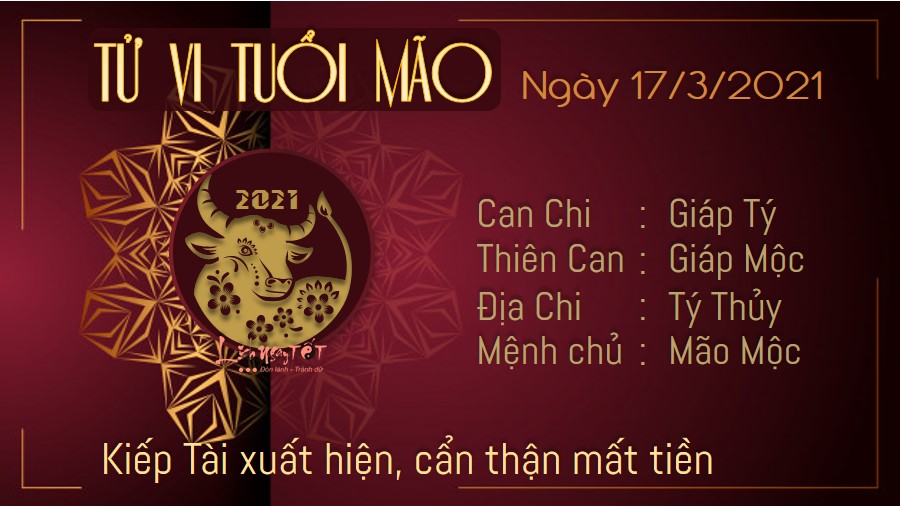 Tý Mão Tương Hình gây ra không ít áp lực cho người tuổi Mão trong ngày thứ 4 này. Có vẻ như bạn đang ôm đồm khá nhiều công việc vào người rồi, hãy học cách chia sẻ để có được trợ giúp tốt nhất trong những thời điểm cấp thiết như thế này. Lại thêm Kiếp Tài xuất hiện mang theo điềm báo tiền bạc thất thoát trong ngày này. Đừng vì những lời dụ dỗ ngon ngọt mà tin lầm người. Nếu mọi chuyện đều có thể dễ dàng thành công đến vậy thì đã không có những người khó khăn nghèo đói nữa rồi. May mắn là ở bên cạnh con giáp này luôn có một người đồng hành đáng tin cậy. Người ấy sẽ đưa ra cho bạn những lời khuyên hữu ích trong ngày Thủy Mộc tương sinh này.
