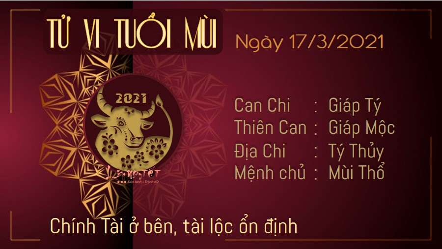 Tý Mùi Tương Hại có thể ảnh hưởng trực tiếp đến người tuổi Mùi, khiến cho bạn khó thoát khỏi vòng vây của kẻ tiểu nhân. Chỉ cần bạn để lộ một sơ hở dù là nhỏ nhất, kẻ xấu bụng đã ngay lập tức nhằm vào chúng để hạ bệ bạn rồi. May mắn có Chính Tài ở bên trợ mệnh, vận trình tài lộc của con giáp dần trở nên ổn định hơn nhiều so với trước đó. Sự kiên trì bền bỉ của bạn đã được minh chứng một cách rõ nét. Bạn sẽ từng bước gặt hái được những thành quả đúng như ý muốn của bạn. Thủy Thổ bất dung, bản mệnh sẽ phải đối mặt với nguy cơ tình cảm tan vỡ vì chính sự vô tâm của bạn. Đừng để giữa hai người xuất hiện bất cứ bức tường khoảng cách nào.