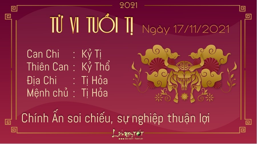 Chính Ấn soi chiếu, người tuổi Tị gặp được nhiều may mắn trên con đường sự nghiệp vào ngày hôm nay. Bạn có thể tìm ra cách chính xác để giải quyết vấn đề, dẫn dắt tập thể vượt qua giai đoạn khó khăn và tiến về phía trước. Nếu là người làm lãnh đạo, bạn nhận được sự tôn trọng của cấp dưới. Để có thể được như vậy là nhờ bạn cũng luôn tôn trọng và quan tâm đến mọi người xung quanh, không áp đặt ai phải làm việc này việc khác. Hỏa sinh Thổ, người tuổi Tị có thể gặp được một người nào đó khiến bạn cảm thấy yêu mến ngay từ cái nhìn đầu tiên. Đừng ngại ngần, hãy tìm cách giữ liên hệ với đối phương rồi từ đó kéo gần khoảng cách, khiến đôi bên thêm hiểu về nhau.