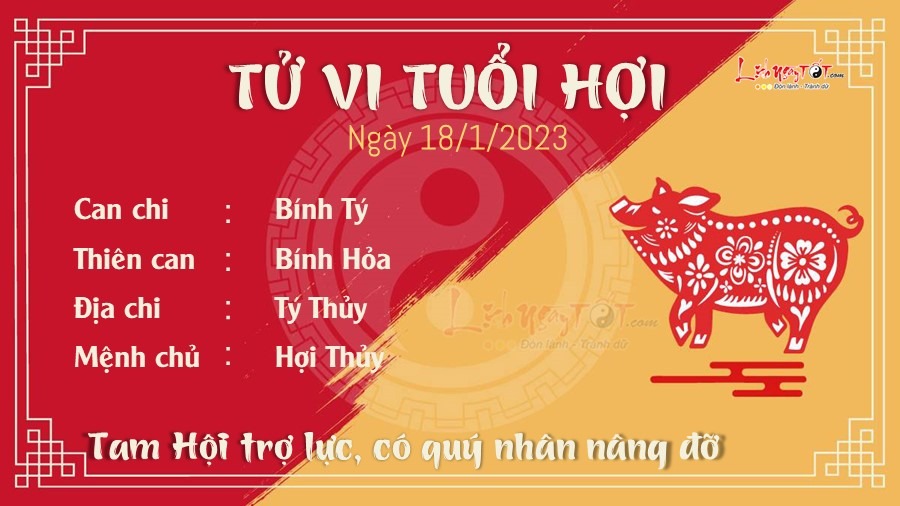 Thiên Quan lâm vận cảnh báo tuổi Hợi hôm nay làm ăn chớ hấp tấp. Người làm dịch vụ vận tải, du lịch có khách khó tính ghé thăm, hay gặp khó khăn trong việc thỏa thuận. Bạn vẫn chưa hoàn tất mọi công việc để chuẩn bị nghỉ Tết, đừng tham làm ăn bằng đường tắt kẻo vướng vào pháp luật. May mắn có Tam Hội trợ lực nên chuyện tiền bạc không bị ảnh hưởng lại còn được quý nhân nâng đỡ. Nay đầu tư có lãi, các hạng mục cuối năm quyết toán hết, thu về lợi nhuận khá cao. Nhiều người có tiền sắm Tết thoải mái, không phải lo lắng quá nhiều. Tình cảm tiến triển rõ rệt, tuy nhiên nhắc nhở người nhà Hợi nên ngó trước nhìn sau kỹ càng kẻo dính tai nạn bất ngờ. Vợ chồng đồng thuận, hợp ý nhau, có thời gian bàn bạc chuyện đi Tết nội ngoại, con cái bình an vô sự.