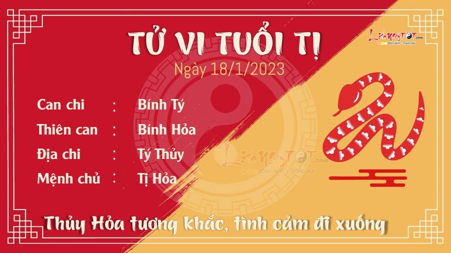 Tỷ Kiên giáng họa khiến công việc của người tuổi Tị không được suôn sẻ. Dù không muốn nhưng bạn cứ phải luôn phải phấn đấu, ganh đua để mưu cầu lợi ích cho mình. Nay đề phòng trộm cắp, gian lận trong việc buôn bán, đừng giao việc quan trọng cho người khác làm. Đường tiền bạc hay gặp trục trặc, nên cẩn thận. Nhiều người sẽ bị sai sót trong giấy tờ, chữ ký, đếm tiền nên phải cẩn trọng hết sức. Nay mà sắm Tết thì không nên sắm những đồ vật có giá trị, nên để ngày khác hẵng mua. Tình cảm có dấu hiệu đi xuống vì Thủy Hỏa tương khắc. Sống mà bạn luôn phải cố để làm hài lòng người khác thì quá là mệt mỏi đó Tị à. Một số người có mâu thuẫn trong gia đình, vợ chồng không hợp nhau, bữa cơm mất đi tiếng cười.