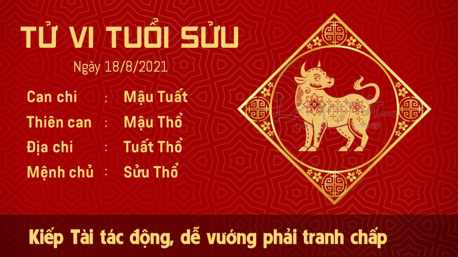 Kiếp Tài tác động, người tuổi Sửu dễ vướng phải những phi vụ tranh quyền đoạt lợi giữa đồng nghiệp, bạn bè với nhau. Bạn cần giữ vững lập trường của mình, chớ để bản thân lung lay vì những lời rủ rê, bàn ra tán vào. Bạn vốn là một người mạnh mẽ, kiên định nhưng đôi khi, những quyết định của bạn quá chủ quan, nông nổi, khiến bạn phải đối diện với nhiều rắc rối. Vì vậy, bạn cần học cách bàn bạc, trao đổi với mọi người xung quanh nhiều hơn. Thổ vượng nhắc nhở bản mệnh hãy từ bỏ những suy nghĩ cố hữu để tiếp nhận những điều mới mẻ hơn, đừng mãi hạn chế bản thân trong những điều mình đã biết. Dù là lãnh đạo hay nhân viên, bạn cũng cần học cách tiếp thu nhận xét của mọi người.
