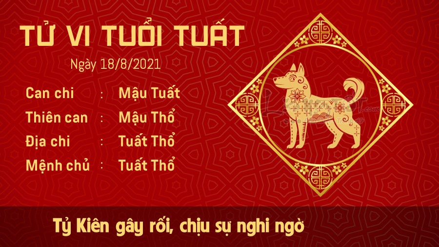 Tỷ Kiên gây rối, người tuổi Tuất dễ vướng phải những phi vụ tranh quyền đoạt lợi không đáng có. Có thể bạn sẽ phải nhận lấy ánh mắt nghi ngờ của mọi người xung quanh, vì thế, điều bạn cần làm là chứng minh bản lĩnh cho người khác thấy. Trước khi đưa ra quyết định nào, bạn cũng cần suy nghĩ một cách cẩn thận, tránh manh động, mù quáng, thiếu lý trí. Nếu quyết định bạn đưa ra bị nhiều người phản đối thì bạn cũng nên đánh giá lại mọi mặt để kiểm tra xem mình có phạm sai lầm nào không. Hôm nay trực Mãn là ngày thích hợp để cầu tài, cầu phúc, tế tự. Do đó, bạn nên sắp xếp thực hiện công việc phù hợp vào ngày hôm nay để có cát tinh phù trợ, gặp nhiều may mắn.