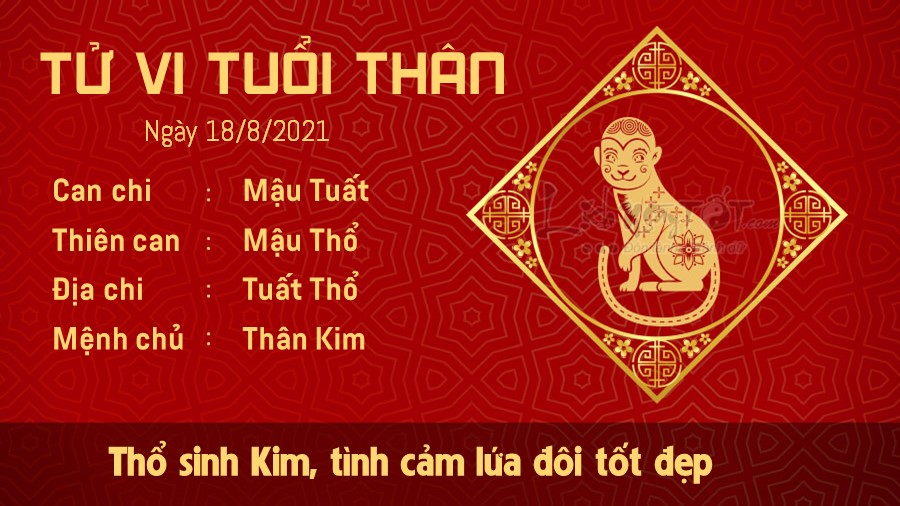 Thổ sinh Kim báo tin mừng cho chuyện tình cảm của tuổi Thân. Bản mệnh rất thấu hiểu nửa kia của mình, thậm chí mỗi lần mâu thuẫn là một lần đôi bên thêm thấu hiểu nhau hơn. Hai người luôn đồng tâm hiệp lực nên chẳng còn chuyện nào là quá khó giải quyết nữa. Ngoài ra, con giáp này còn là một người cha, người mẹ rất quan tâm đến con cái của mình. Thực Thần phù trợ mang đến những cơ hội hợp tác, làm ăn đầy triển vọng đối với những người làm nghề tự do. Bạn cũng có thể hưởng một khoản tiền lương, tiền thưởng kha khá do những mối làm ăn từ trước đó mang lại.