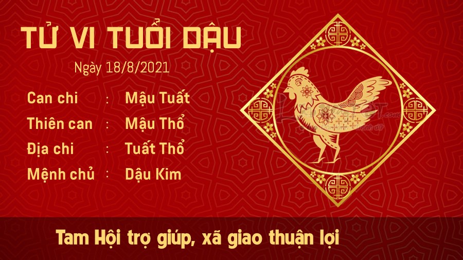 Nhờ có Tam Hội trợ giúp nên tuổi Dậu gặp nhiều điều thuận lợi khi phát triển các mối quan hệ xã hội. Nếu may mắn, bạn có thể tìm được người đồng chí hướng trong ngày hôm nay và đôi bên có thể hợp sức cùng phát triển. Công việc của người làm công ăn lương có những chuyển biến tích cực. Bạn không ngại ngần nhận những trách nhiệm khó khăn ngay cả khi mọi người xung quanh đều chối từ, thoái thác. Lãnh đạo hẳn đang đánh giá bạn rất cao, tương lai thăng tiến chẳng còn xa nữa. Thổ sinh Kim, bản mệnh luôn rất tự hào về gia đình mình bởi các thành viên luôn thấu hiểu nhau, nguyên nhân là vì gia đình bạn đã thường xuyên trò chuyện, tâm sự với nhau, kể cả trong những chuyện khó giãi bày nhất.