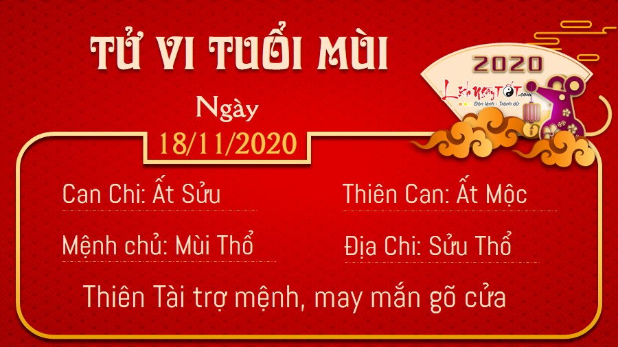 Sửu Thìn Tương Phá, người tuổi Thìn cần đề phòng có kẻ tiểu nhân đang tìm cơ hội để rắp tâm hãm hại bạn. Vì vậy, đừng để lộ bất cứ sơ hở nào, hãy cẩn trọng trong từng lời nói hành động của mình trong ngày hôm nay. May mắn là có Chính Tài trợ mệnh, vận trình tài lộc của bản mệnh có dấu hiệu khởi sắc rõ rệt. Những khoản lương thưởng từ nguồn thu nhập chính giúp túi tiền của bạn rủng rỉnh, không lo thiếu tiền tiêu trong thời điểm này. Ngày 18/11/2020 dương lịch là ngày Can Ất. Ngày can Ất không nên trị bệnh ở hầu. Bản mệnh chú ý không tác động lên vị trí này trong ngày hôm nay.