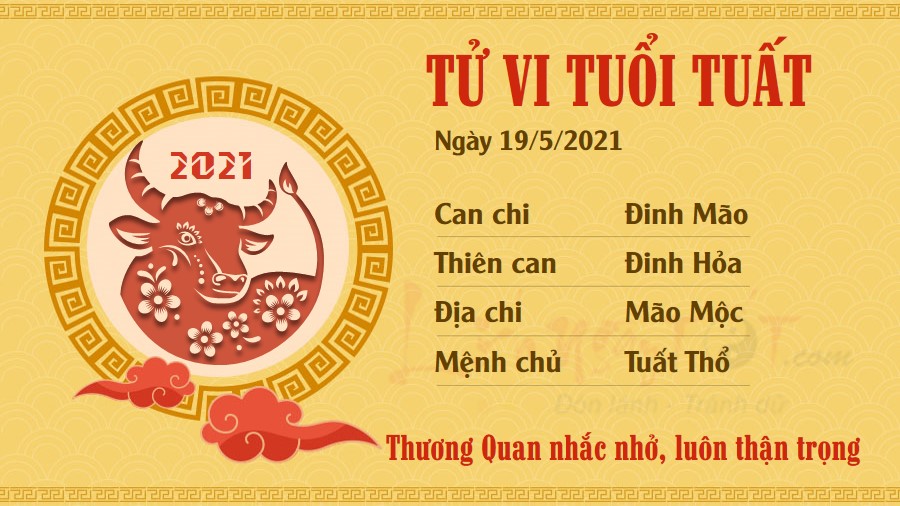 Được Lục Hợp che chở, người tuổi Tuất sẽ chẳng phải lo lắng quá nhiều về chuyện công việc hay tiền bạc nữa. Những thành tích mà bạn đạt được trong thời gian gần đây đã khẳng định phần nào năng lực của bản thân rồi. Tuy nhiên, bạn đừng cho phép bản thân được chủ quan lơ là mà hành động vội vàng trong ngày có Thương Quan giáng mệnh này. Chỉ một sơ suất nhỏ thôi cũng có thể khiến mọi nỗ lực của bạn tan thành mây khói đó. Người độc thân vẫn chưa thể tìm được một nửa cho mình trong ngày Thổ Mộc xung khắc này. Dường như vẫn có những rào cản nào đó đang ngăn trở bạn tiến đến một mối quan hệ mới.