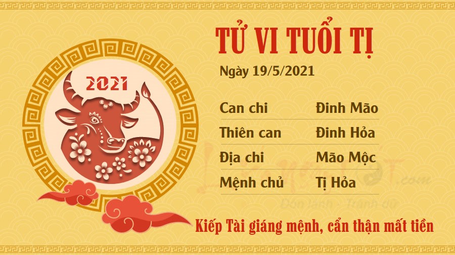 19/05/2021 13:00Tử vi thứ 4 ngày 19/05/2021 của 12 con giáp: Sửu túi tiền rủng rỉnh, Tý bị tiểu nhân rình rập