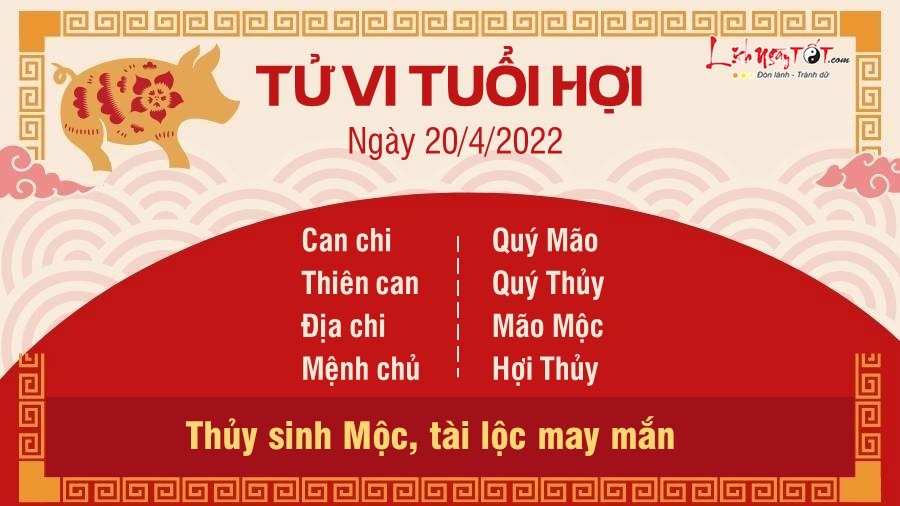 Tuổi Hợi lâm Kiếp Tài, làm đến đâu phải chắc đến đấy, luôn kiểm tra lại công việc để giảm thiểu nguy cơ rủi ro xuống mức thấp nhất. Đừng để một phút lơ là mà người khác cướp mất vị trí đang có khiến bạn sẽ phải hối hận sau này. Đường tình cảm nhờ Tam Hợp trợ vận nên gia đình bình yên, hạnh phúc. Tình cảm tiến triển nhưng bạn vẫn nên quan tâm tới người ấy nhiều hơn. Bạn đang hơi vô tâm với người ấy đó, đừng để đối phương phải buồn lòng bạn nhé. Đường tài lộc cũng may mắn nhờ cục diện Thủy sinh Mộc. Hợi tính tình xởi lởi, vô tư nên lộc lá cứ thế mà đến chẳng cần phải đi xin xỏ của ai. Bạn sống có tâm ắt có tầm, chẳng cần ai tôn sùng, chỉ cần người khác biết Hợi không phải kiểu người dễ tính rồi quỵt tiền là được.