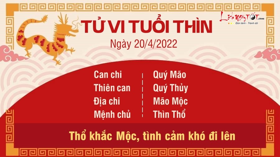 Công việc của tuổi Thìn lâm Chính Quan nên rất may mắn, nhiều bạn xin việc thành công, người đi làm thì có khả năng được tăng lương, đề bạt. Bạn cảm thấy mệt mỏi nhưng vì cơm áo gạo tiền nên không ngừng cố gắng cho mọi người thấy. Nhờ cục diện ngũ hành Thổ khắc Mộc nên tình cảm khó mà đi lên. Người độc thân tuy gặp được người phù hợp nhưng giữa 2 người đang quen nhau vẫn còn tồn tại nhiều khoảng cách nên chưa thực sự đến được với nhau, chưa thể hiện rõ cho đối phương biết. Dù là con giáp giỏi kinh doanh nhưng có đôi lúc tình cảm rất lao đao. Thời gian này không có cơ hội kiếm tiền, cứ phải lao lực vất vả. Đừng bỏ qua cơ khó khăn này nhé, cứ chăm chỉ là có tiền thôi, sau cơn mưa trời lại sáng.