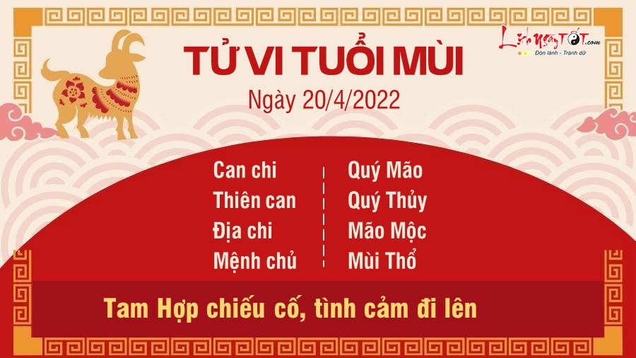 Tuổi Mùi chịu ảnh hưởng từ Thiên Quan nên có phần chật vật trong công việc hơn người khác. Bạn đang nỗ lực hết mình và muốn thăng tiến nhanh hơn nữa cho tương lai sắp tới nhưng chưa có hy vọng. Đừng quá nóng vội, chậm mà chắc Mùi nhé. Vận tình cảm nhờ Tam Hợp chiếu cố, gia đình chính là nơi ấm áp nhất. Nếu trở về nhà quây quần bên mâm cơm sẽ giúp tâm trạng bạn thoải mái hơn nhiều. Tình cảm cứ thế mà đi lên vì Mùi sống biết điều, hiền lành, được bạn bè và người lạ quý mến. Con giáp này chơi đẹp chẳng để ai thiệt thòi bao giờ. Vận tài lộc không như ý vì cục diện Mộc khắc Thổ. Tiền bạc không được hanh thông cho lắm vì con giáp này vẫn còn non tay. Có lẽ bạn nên nghiên cứu thêm từ các nguồn tài liệu có liên quan, hỏi kinh nghiệm ở người lớn nhiều hơn.