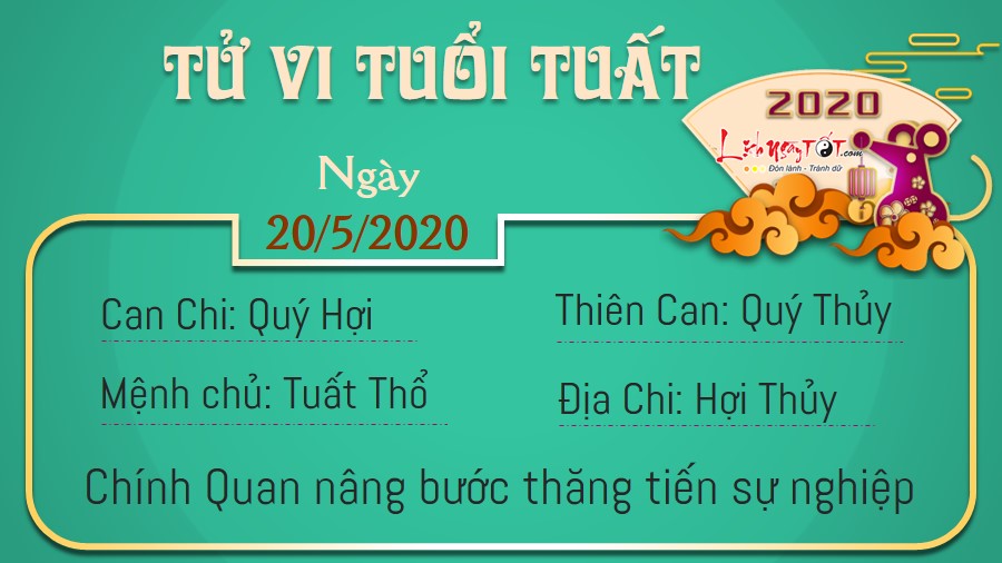 Thổ Thủy xung khắc khiến tuổi Tuất gặp phải không ít rắc rối trong chuyện tình cảm. Xung đột nảy sinh từ những điều nhỏ nhặt cũng có thể trở thành mồi lửa thiêu rụi mọi cố gắng vun vén của bạn trong suốt thời gian qua. May mắn là có cát thần Chính Quan độ mệnh giúp cho công việc của bản mệnh có những bước phát triển đáng kể. Đây là tin tức tốt lành có thể xoa dịu những muộn phiền trong chuyện tình cảm của con giáp này. Với vốn kiến thức rộng rãi của mình, con giáp này luôn tìm ra những phương án xử lý vấn đề một cách nhanh chóng, gọn gàng và chu toàn nhất. Những lời khen ngợi của đồng nghiệp và cấp trên sẽ tiếp sức cho bạn, giúp bạn thêm phần tự tin hoàn thành tốt những nhiệm vụ.