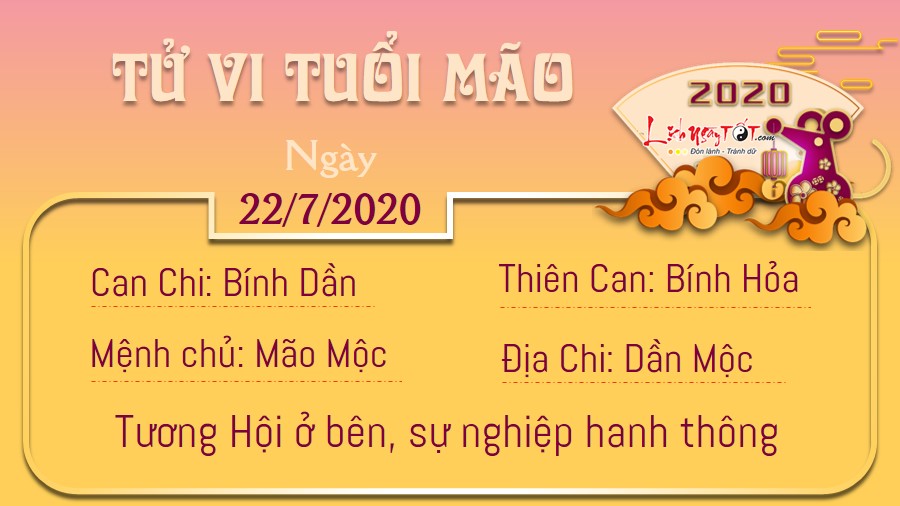 Ngày Dần Mão Tương Hội như hôm nay, công việc của người tuổi Mão sẽ thuận lợi suôn sẻ đến không ngờ. Bạn nhanh chóng hoàn thành các nhiệm vụ mà không gặp phải bất cứ vướng mắc nào. Các mối quan hệ xã giao của bạn cũng rất tốt đẹp, bạn nhận được không ít lời khuyên của những người đi trước, nhờ đó mà tích lũy được không ít kinh nghiệm cho bản thân. Bạn hiểu được sống khiêm tốn, luôn học hỏi, cầu tiến mới chính là chìa khóa dẫn đến thành công. Chính Ấn trợ mệnh, với cách xử lý vấn đề thông minh, bản mệnh dễ dàng khẳng định được năng lực của bản thân. Chỉ cần bạn tiếp tục nỗ lực thì những công sức của bạn sẽ sớm được đền đáp xứng đáng thôi.