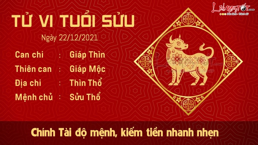 Ngày thứ 4 khá dễ chịu với mặt công việc của người tuổi Sửu. Hai hành Thổ tương hòa giúp bạn cân bằng lại thời gian và công việc một cách dễ dàng. Mối quan hệ với đồng nghiệp khá ổn thỏa, nhiều người lớn tuổi quý mến Sửu vì tính cách vui vẻ, hòa nhã. Chuyện tình cảm cũng không có gì đáng lo. Bạn cảm thấy hạnh phúc khi nhận được những lời yêu thương từ mọi người xung quanh. Nữ mệnh thì được nửa kia yêu chiều hết mực, nam mệnh có được không gian riêng tư để làm những điều mình thích. Tin vui nhất trong ngày nằm ở mặt tài chính, bạn được cát tinh Chính Tài độ mệnh nên kiếm tiền rất nhanh. May mắn chỉ là một phần, còn lại đều dựa vào chính sức lực của Sửu. Bạn cần cù, chịu khó cày cuốc nên tiền bạc cứ hết lại có.