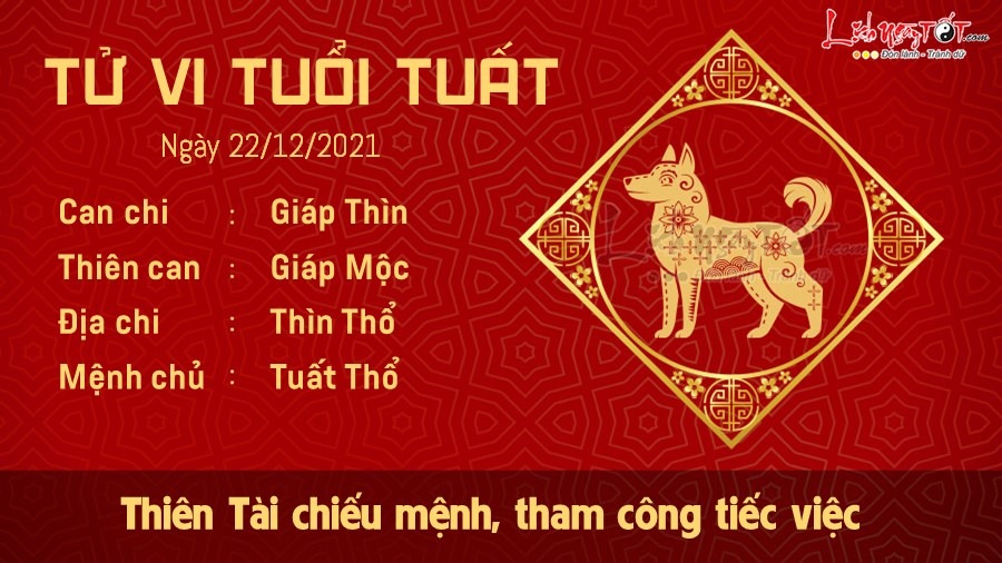 Hôm nay có Thiên Tài chiếu mệnh nên tuổi Tuất có thể thử chơi vé số hoặc tìm vận may trong những công việc phụ.Tuy nhiên, bạn thường tham công tiếc việc đến nỗi đôi khi tự co mình lại trước các mối quan hệ xã giao trong công việc khiến đối tác e ngại. Tuy nhiên ngày gặp Tứ hành xung gây bất lợi khá nhiều cho tình cảm tuổi Tuất. Dám yêu dám ghét, dám làm dám chịu vốn là cá tính đặc trưng của tuổi Tuất nhưng nhiều người lại không thích điều đó. Nếu người những tuổi này biết cư xử khéo léo, không so đo tính toán thiệt hơn thì sẽ ổn hơn rất nhiều. Trong ngày có nhiều chuyện không như ý tới tấp đổ về, vì vậy cần cảnh giác, đề phòng xảy ra tình trạng khó khăn về tiền bạc. Thời gian tới đây bạn sẽ phải chi khá nhiều tiền cho bạn bè, anh em họ hàng, nên cân nhắc sao cho hợp lý.