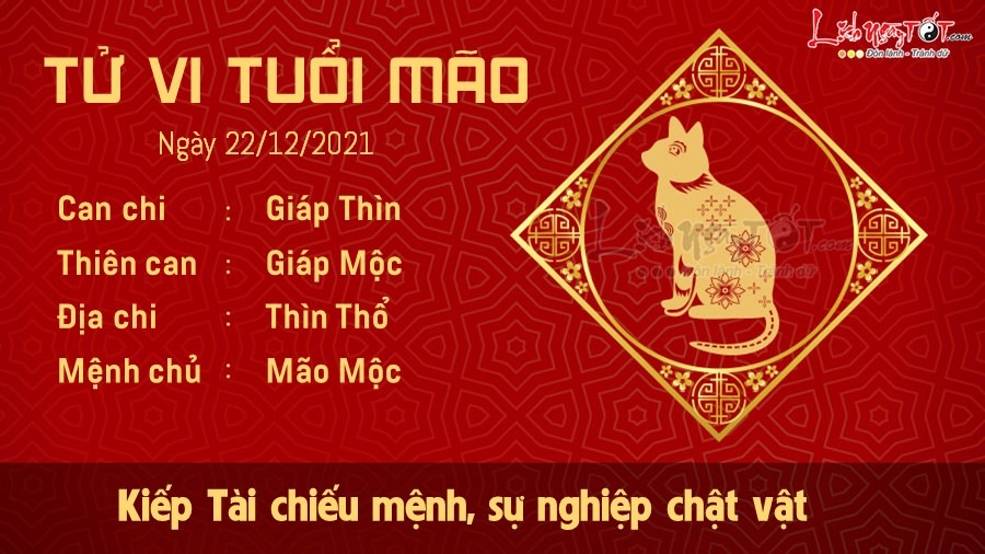 Kiếp Tài chiếu mệnh nên người tuổi Mão có một ngày làm việc khá chật vật. Bạn gặp khó khăn khi không một ai có thiện chí giúp đỡ bạn ở cơ quan. Mão lắm tài nhưng lại không được người ta công nhận điều đó, hãy cẩn thận vì nhiều kẻ chỉ chờ sơ hở để chèn ép bạn. Ngày Mộc khắc Thổ nên chuyện yêu đương và bạn bè không được như ý muốn. Những nồng nhiệt thuở ban đầu đã bị ngọn gió mùa đông làm cho nguội lạnh. Bạn thường khá đơn độc, cô quạnh, thỉnh thoảng gặp được người bạn hợp cạ nhưng hiếm khi gặp được nhau. Có người cố tình gây khó khăn cho mặt tài chính của Mão, đó có thể là một người bạn quen biết từ lâu. Những kế hoạch làm ăn của bạn trong thời gian này hiếm khi được ủng hộ, hãy cứ tin tưởng và khả năng của mình, chúng tôi tin bạn làm được.