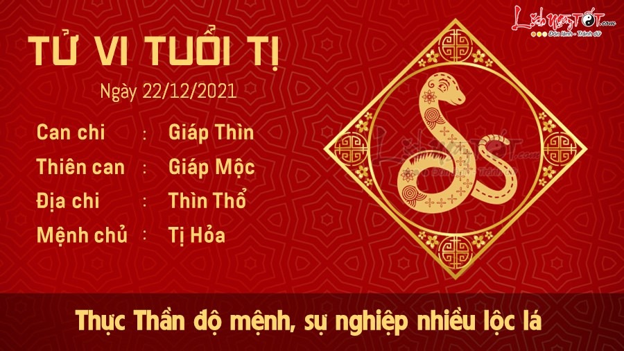 Thực Thần cát tinh dự báo đường sự nghiệp của Tị hôm nay nhiều lộc lá, thời cơ đến phải nhanh tay chớp lấy. Người này rất hay được quý nhân giúp đỡ trong công việc, làm gì cũng thẳng thắn và minh bạch nên hiếm khi gặp rắc rối. Phong cách làm việc của tị thật đáng để học hỏi. Bạn hòa nhã, thoáng tính và đam mê ẩm thực, bạn không ngần ngại chia sẻ năng lượng tích cực này đến bạn bè và người yêu nên đường tình cảm rất xán lạn. Không còn những mâu thuẫn tranh cãi nữa, cả gia đình luôn ngập tràn tiếng cười, niềm vui nối tiếp. Ngũ hành Hỏa sinh Thổ bồi dưỡng cho con đường tài lộc của Tị. Bạn làm được tiêu được, bản tính ưa tự do thích hưởng thụ nên bạn cày cuốc không thua kém một ai. Đam mê kiếm tiền cũng là chuyện tốt, thời gian tới có nhiều tin vui tiền bạc dành cho bạn.