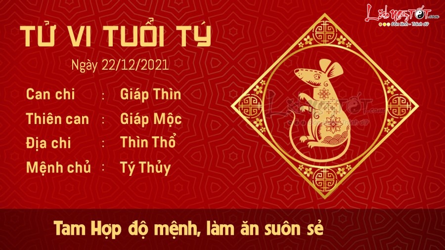 Hôm nay công việc của Tý ảnh hưởng từ Chính Ấn nên sẽ thuận lợi cho những người đang đi học hoặc làm ở vị trí cao. Bạn thông minh và làm việc có tâm nên được nhiều người kính nể, tự mình tạo ra những cơ hội thể hiện bản lĩnh. Ngũ hành Thổ khắc Thủy nên chuyện tình cảm không được thuận lợi cho lắm. Có quá nhiều trở ngại giữa Tý và người ấy mà không có ai chịu nói ra. Người đã kết hôn thì phải lo toan nhiều việc cho anh em họ hàng 2 bên nội ngoại không ngơi tay. Bù lại mặt tiền bạc gặp cục diện Tam Hợp nên đường làm ăn của Tý càng ngày càng sáng, có hy vọng vực lại sau bao nhiêu vấp ngã. Có công mài sắt có ngày nên kim, ai cũng cần phải nỗ lực mới có ngày thành công.