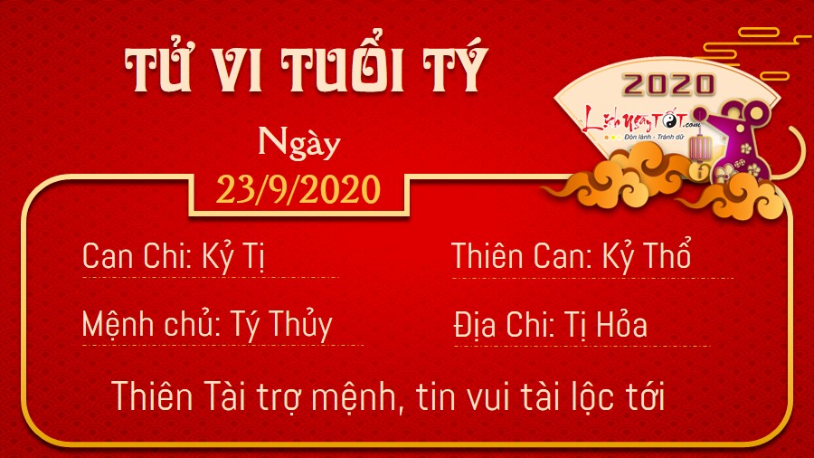 Tuổi Tị sẽ có một ngày làm việc vô cùng thuận lợi dưới sự che chở của Chính Ấn. Đặc biệt là với những ai theo đuổi con đường công danh sự nghiệp, bản mệnh có thể phát huy hết tiềm năng cũng như tận dụng hết các ưu thế của mình để xử lý công việc một cách nhanh chóng và hiệu quả nhất. Tuy nhiên, sức khỏe của con giáp này có thể bị ảnh hưởng ít nhiều trong ngày Hỏa khí cực vượng như hôm nay. Những ai có tiền sử các bệnh về xương khớp, bệnh liên quan đến tì vị, dạ dày, các bệnh liên quan đến thần kinh do bị suy nhược cơ thể… Ngày 23/9/2020 là ngày Tam nương sát, nên hạn chế tiến hành những công việc trọng đại như khai trương, xuất hành, cưới hỏi, sửa chữa hay cất nhà.