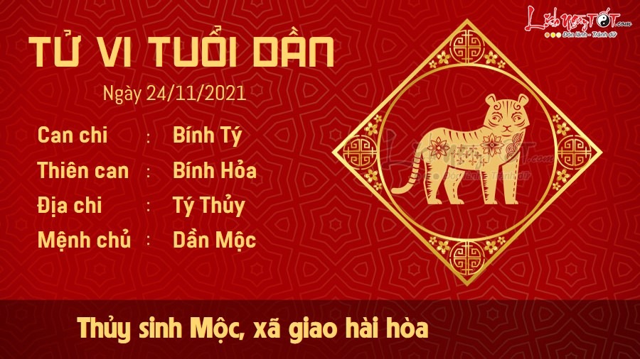 Thủy sinh Mộc, người tuổi Dần xây dựng được những mối quan hệ xã giao hài hòa. Dù có là khi vướng phải khó khăn, bạn cũng nhận được sự giúp đỡ của nhiều người xung quanh. Trong chuyện tình cảm, mối quan hệ giữa bạn và người ấy đang ngày càng trở nên sâu sắc hơn. Bạn và người ấy thấu hiểu nhau mà không cần đôi bên phải nói rõ ràng ra thành lời. Mọi người xung quanh đều ngưỡng mộ tình cảm của hai người. Hôm nay trực Trừ là ngày tốt để thực hiện những công việc trọng đại. Vì thế, nếu đã có kế hoạch thực hiện công việc gì thì bản mệnh nên sắp xếp thực hiện ngay để quá trình thực hiện gặp nhiều may mắn.