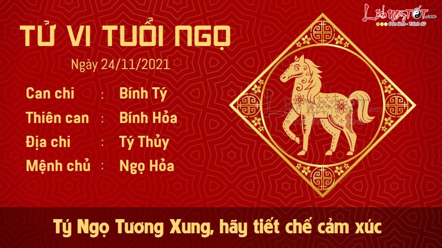 Tý Ngọ tương xung khiến người tuổi Ngọ không biết tiết chế cảm xúc của mình. Bạn dễ trở nên nóng nảy mỗi khi có ai đó nói điều trái ngược với suy nghĩ của mình. Chính thái độ của bạn sẽ đẩy bạn vào những cuộc tranh cãi không hồi kết. Có lẽ con giáp này cần phải rèn luyện để trở thành một người điềm tĩnh hơn. Còn nếu cứ cư xử một cách bộp chộp, nghĩ gì nói nấy, nghĩ gì làm nấy thì việc gì cũng khó khăn, khó mà tiến triển thuận lợi được như mong muốn của bạn. Thủy khắc Hỏa, bạn cũng cần phải học cách đặt mình vào vị trí của người khác, đặc biệt là vị trí của những người thân yêu. Không phải những điều bạn cho là đúng đã chắc chắn sẽ đúng. Hãy quan tâm hơn đến cảm nhận của mọi người xung quanh.