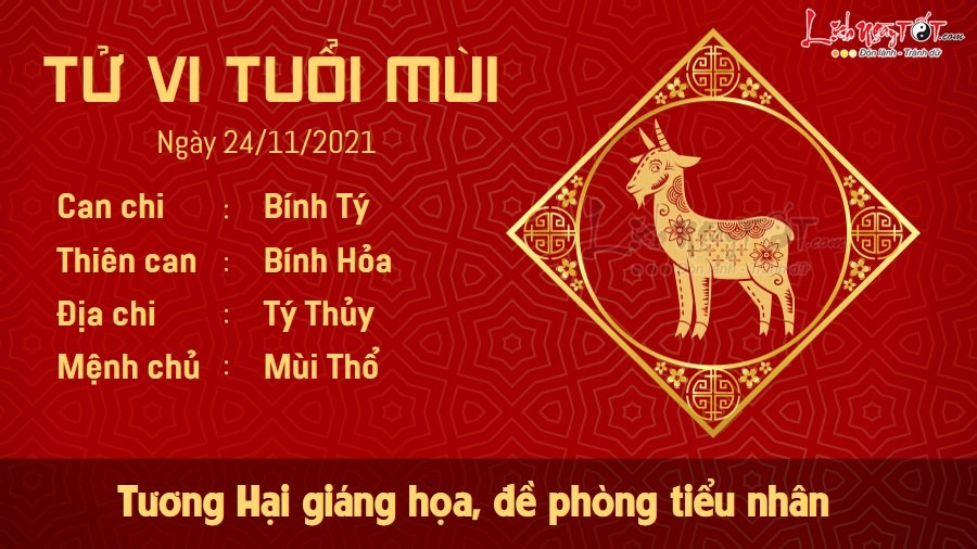 Tương Hại giáng họa, người tuổi Mùi cần đề phòng những kẻ cố tình tỏ ra thân cận với mình. Đó có thể là kẻ tiểu nhân đang tìm lúc bạn sơ hở để giở trò hãm hại bạn. Người làm lãnh đạo cần có chế độ thưởng phạt phân minh, tránh công tư lẫn lộn, nghe theo lời xúi bẩy của nhân viên xấu. Còn nếu bản mệnh chỉ thích nghe những lời bùi tai thì rất dễ dẫn cả tập thể đi sai hướng, gây nên những tổn thất to lớn cho công ty. Thổ khắc Thủy, mối quan hệ giữa bản mệnh và con cái xuất hiện nhiều khúc mắc. Những cách biệt thế hệ có thể khiến đôi bên mâu thuẫn vì những quan điểm không trùng khớp với nhau. Bạn nên là người ngồi lại và lắng nghe con cái trước.