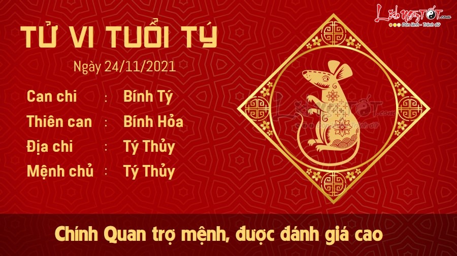 Chính Quan trợ mệnh, hôm nay là một ngày thuận lợi trong sự nghiệp của người tuổi Tý. Bạn hoàn thành xuất sắc nhiệm vụ được giao và nhận được sự đánh giá cao của lãnh đạo. Bạn vốn là người nghiêm túc, làm việc có đầu có đuôi nhưng đôi khi khó tránh khỏi bảo thủ trong lối suy nghĩ. Bản mệnh cần học cách thay đổi các góc độ khác nhau để nhìn nhận, đánh giá vấn đề, như vậy mới tìm ra hướng đi mới để phát triển sự nghiệp. Trong ngày Thủy vượng như hôm nay, bản mệnh cần chú ý giữ gìn sức khỏe, đặc biệt là các bệnh về xương khớp ở người già và người làm văn phòng. Hãy làm việc hoặc vận động hợp lý, chớ nên ngồi một chỗ quá lâu hoặc làm việc nặng quá sức.