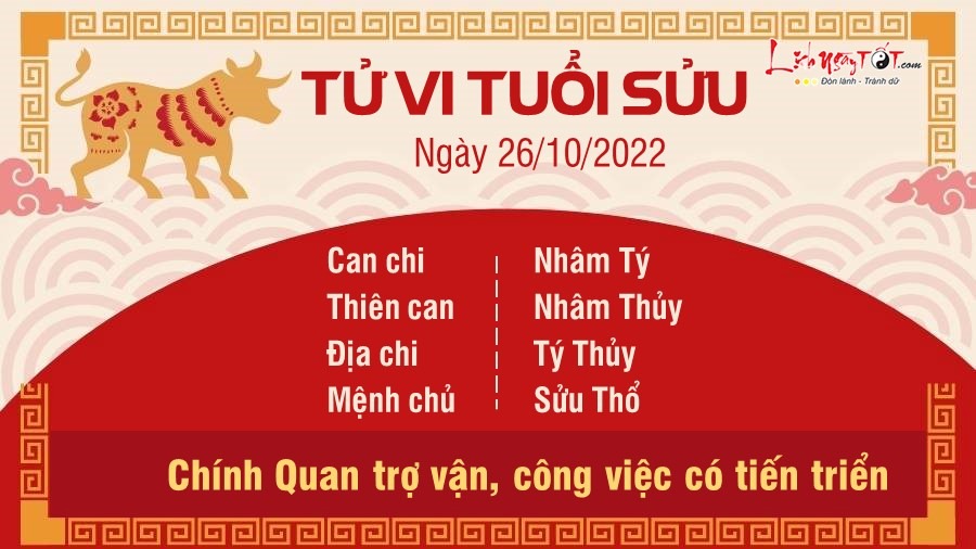 Được Chính Quan nâng đỡ nên công việc của Sửu có tiến triển hơn hẳn mọi ngày. Việc mình thì mình làm, bạn không cần dựa dẫm hay xu nịnh ai để được hỗ trợ. Người nào đang đón chờ tin tức về dự án, xin việc, thi cử thì sớm nhận được tin tốt. Vận tài lộc gặp Tam Hội nên tuổi này dễ có quý nhân đến giúp. Bạn vốn là người ghét sân si, chỉ ham kiếm tiền nên cũng góp được kha khá tiền. Năm nay là năm khó nhằn, nếu ở thời điểm hiện tại bạn vẫn có lương đều đặn, có cơm ăn no là may mắn hơn hàng vạn người. Đường tình cảm xuống dốc vì Thổ Thủy tương khắc. Chẳng ai thương bạn như gia đình cả nên nếu có ai đó phản bội bạn thì cũng là chuyện thường. Bạn cũng nên bớt tham việc để dành thời gian cho gia đình nhiều hơn.