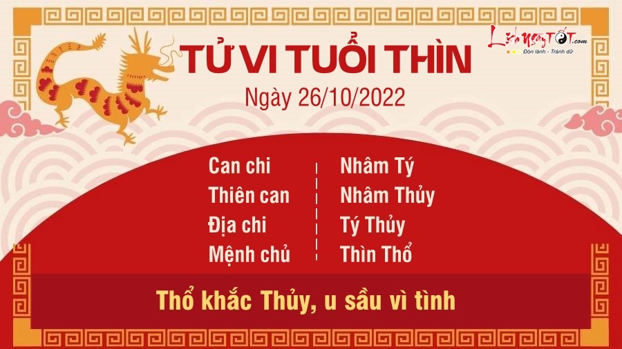 Ngày mới Thiên Quan cảnh báo tuổi Thìn không nên ăn nói bừa bãi khi đi làm kẻo gây phiền phức cho bản thân. Mang tiếng là con giáp tham công tiếc việc nên tử vi khuyên bạn bớt ôm việc về nhà, nên tránh việc đụng chạm đến pháp luật, cấp trên vì khả năng cao sẽ có lúc bạn rơi vào tình trạng nóng giận mất khôn. May mắn là chuyện tiền bạc có Tam Hợp cục phù trợ nên đỡ vất vả hơn hẳn. Con giáp này có thể nhận được những khoản tiền bất ngờ như trúng số, bốc thăm may mắn hay thu hồi được món nợ từ lâu. Song có nhiều tiền cũng đừng nghĩ đến tiêu xài hoang phí, cần tiết kiệm phòng lúc đau ốm. Vì Thổ khắc Thủy nên Thìn dễ u sầu vì đường tình cảm. Bản mệnh không nên có quá nhiều bạn bè, ít nhưng chất lượng còn hơn nhiều mà lợi dụng nhau. Hãy học cách lựa chọn và dành thời gian cho những người ruột thịt.