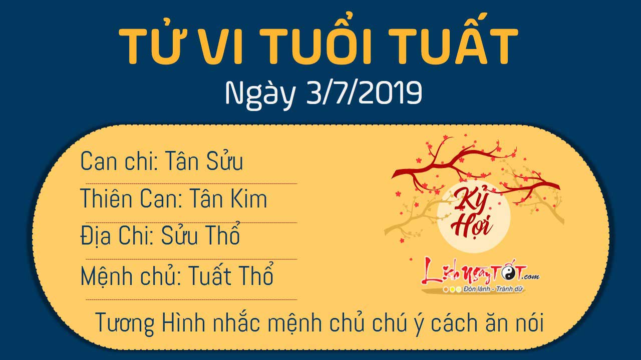 Sửu Tuất tương hình, người tuổi Tuất quá thẳng thắn trong ngày hôm nay. Dù mục đích của mệnh chủ là tốt đi chăng nữa thì vẫn có thể gây ra những phản ứng trái chiều. Trong công việc, bạn dễ gặp phải trở ngại, tuy nhiên, bạn không nên đầu hàng ngay lập tức. Nếu một mình không thể giải quyết được vấn đề thì đừng ngại xin sự trợ giúp từ đồng nghiệp xung quanh mình. Chính Ấn cho thấy bạn có một tương lai xán lạn nếu biết đặt ra những kế hoạch rõ ràng và thực tế ngay từ bây giờ. Hãy xác định rõ điểm mạnh của mình ở đâu để phát triển theo hướng đó.